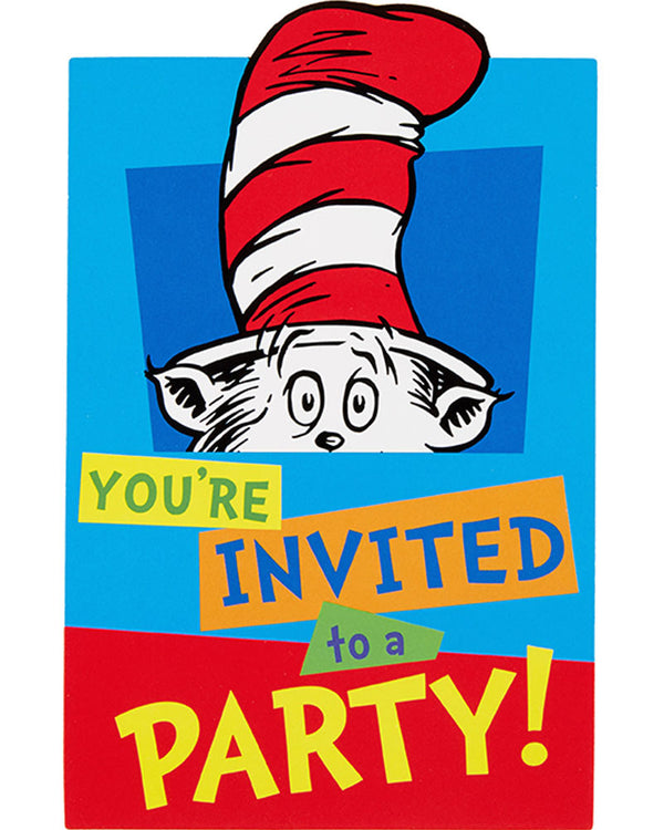 Invite your guests to the party of the year with this set of Dr Seuss Postcard Invitations. Including the invitations, envelopes, envelope sealers and save the date calendar stickers.
