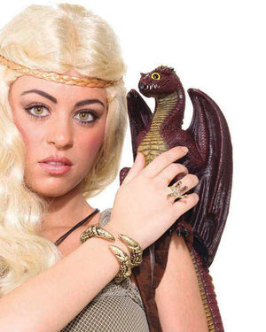 Complete your look as the mother of the dragons with this Dragon Shoulder Sitter. This dragon is held in place on your shoulder by an attached elastic band that goes around your arm.