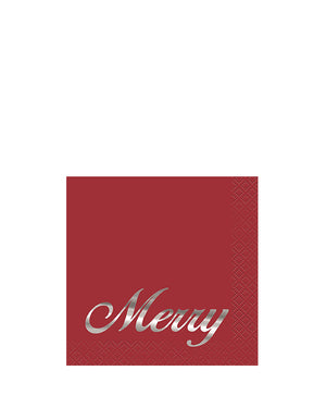Drinks make everyone merrier, but just in case they don't, remind everyone to stay merry these holidays with this Elegant Red Christmas Foil Stamped Beverage Napkins Pack of 16. These napkins are essential for keeping your tables clear of watermarks and reminding all your guests to stay merry with each sip! The napkins are red with the word "merry" stamped in foil. Combine with our range of Christmas party supplies including party cups, party plates, table covers and more.