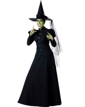 Be the one of the most famous witches around who is instantly recognizable in this Wicked Witch Womens Costume. This one looks like she's been pulled from the set of the Wizard of Oz, it's that good... but evil as can be! The Wicked Witch costume comes with a full length gown, tulle petticoat, hat with tulle sash, and stick-on black fingernails. All you have to add is an evil cackle.