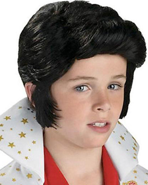 Become the King of Rock in our Kids Elvis Wig. The accessory features a shiny black wig styled with a long black quiff and thick side burns made famous from the style of the King of Rock Elvis Presley! The Kids Elvis Wig makes for a brilliant accessory to finish up any Elvis Presley themed costume for any special occasion! We'd recommend to wear a wig cap for added comfort and to keep your own hair under wraps.
