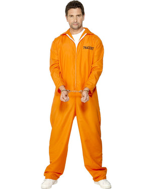 Break free in this classic Escaped Prisoner Mens Costume. A comfortable orange jumpsuit bound to draw attention. Jumpsuit features a white zipper in the front and printed in black on the chest is your prisoner number and around the back is 'EASY JAIL' printed in black. People will be wondering what you were in for so make sure to have something thought up. Perfect for Halloween or your next themed party.