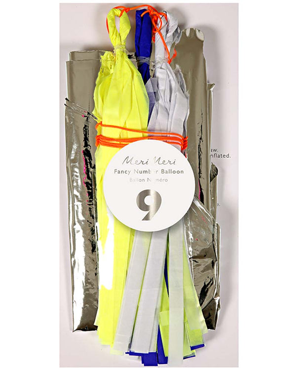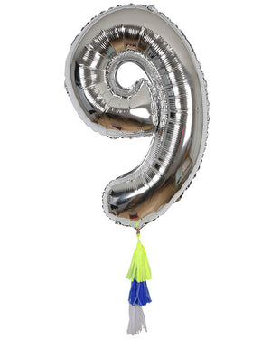 Celebrate a birthday with this standout Fancy Number Nine Silver Foil Balloon. This balloon comes with 3 decorative tissue tassels in different colours.