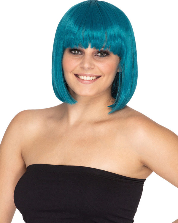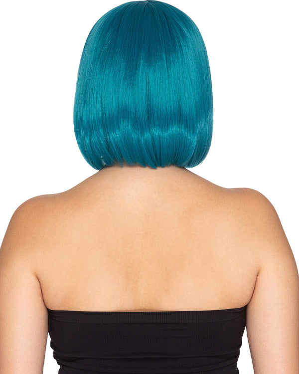 Why dye your hair when you can complete your costume and look incredible in this Fashion Deluxe Teal Bob Wig. This gorgeous bob comes in a tropical teal blue and is styled in a straight bob which sits above your shoulders and features straight bangs in the front. This wig will work with a huge variety of costumes including for festivals, raves, mermaid costumes and more - or you just want to have a different colour hair and style for the day. A bonus wig cap is included for added comfort and to keep your own hair under wraps.