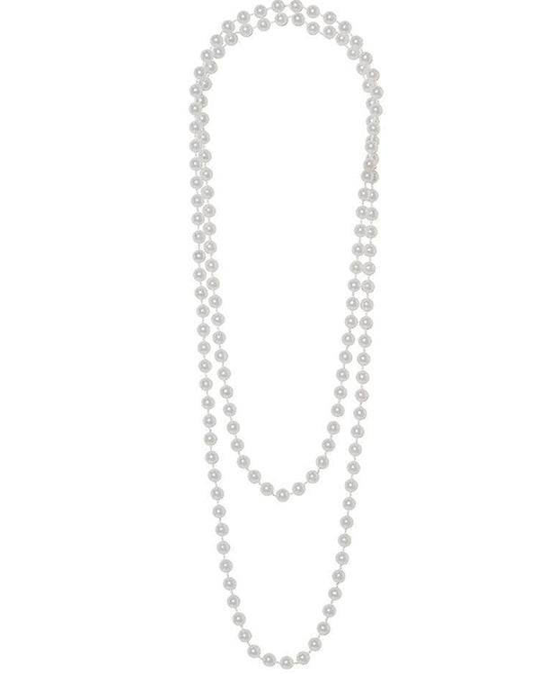 Complete your glamorous outfit with our Faux White Pearl Necklace. Featuring a faux double-layered pearl necklace measuring 157cm long, fantastic for finishing up your 1920s flapper costume for a night of dancing at a Gatsby party!