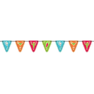 Let's get ready to celebrate Cinco de Mayo! Give your fiesta decorations the finishing touch, when you add this Fiesta Mini Paper Pennant Flag Banner. Made from cardstock, this banner will really get everyone into the party spirit. Banner features a string of pennant flags in colours red, green, blue and orange all with bright images and designs of maracas, margaritas, chilies and more. Hang with up anywhere you like for a wonderful party decoration. Pair this with our range of Mexican Fiesta party supplies including party cups, party plates, tablecovers and more.