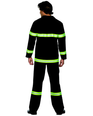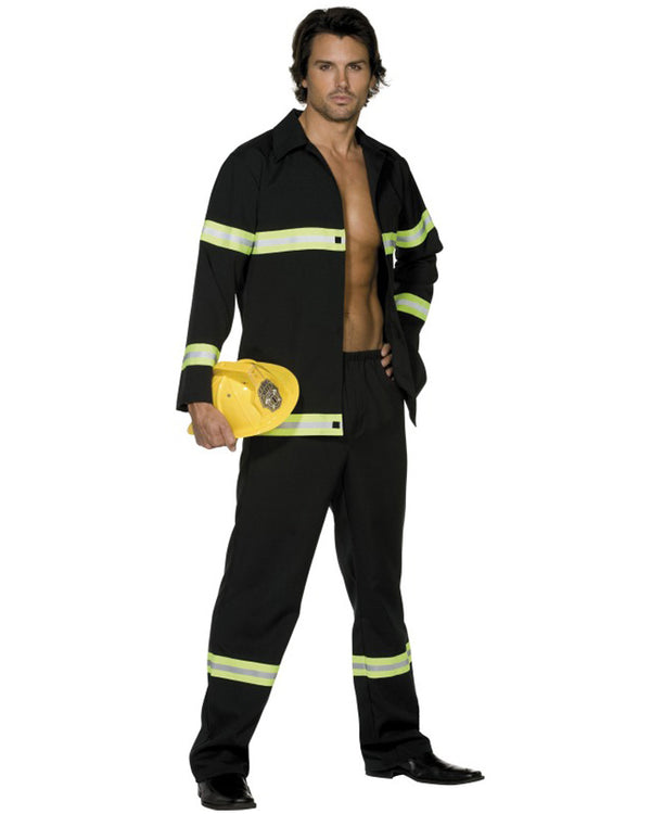 You'll be almost too hot to handle in this Fireman Mens Costume! Ladies will love this costume, which includes a jacket and pants with reflective yellow stripes. There's no need for a shirt!