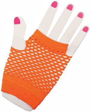 Enjoy your 80s party while wearing our Fishnet Fingerless Glove Orange. The fantastic accessory features a pair of neon orange fishnet fingerless gloves, perfect for finishing up your orange neon 80s costume, for your next 80s themed party! For more check out our 80s neon accessories including leg warmers to complete the look!