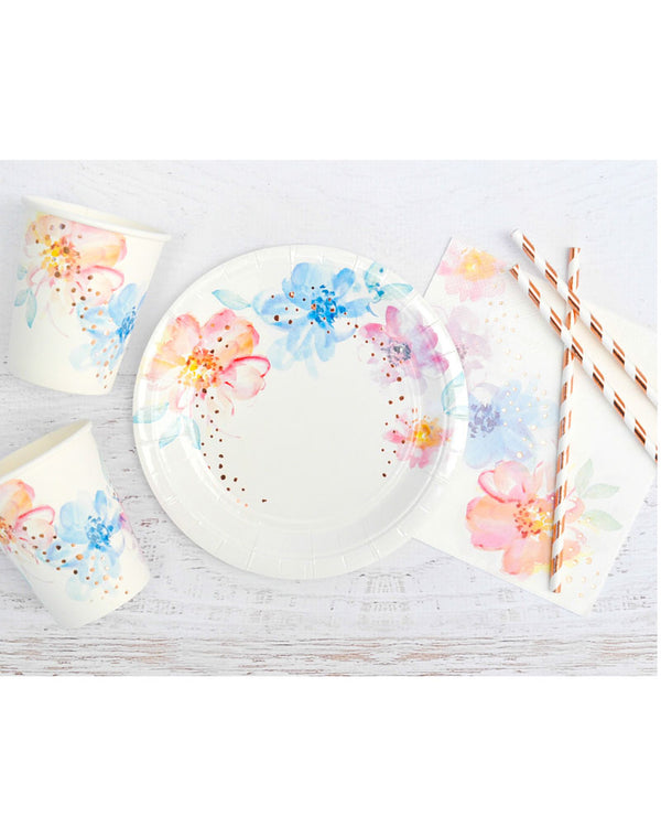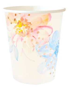 Celebrate your special occasion with this delightful Floral Rose Gold range. These 266ml paper Cups Pack of 10 match up with the co-ordinating plates, napkins and tags. Perfect for birthdays, engagements or summer parties.