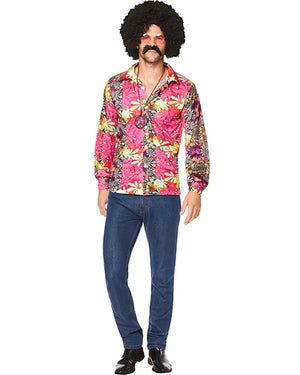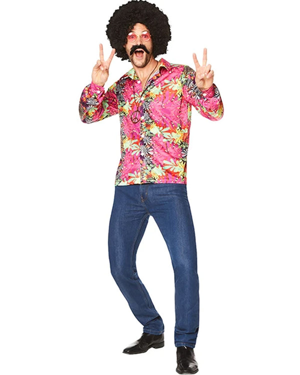 Bring peace and love into the room with this Flower Power Mens Shirt. The shirt has a button up front and collar and features a psychedelic multicolor flower print design.