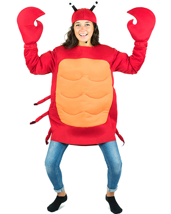 This fun Crab Foam Adult Costume is perfect for a laugh at your next Under the Sea party, Book Week, or any fancy dress party. The costume is easy and simple to slip on over the body and features a red long-sleeved tunic with crab-claw hands, two skinny crab legs protruding from both sides and an orange panel in the center. Also included is a matching red crab cap with two googly eyes on the top. Just keep swimming!
