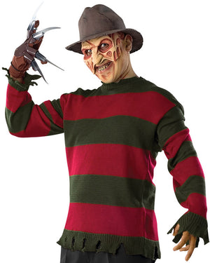 Create the iconic character from A Nightmare on Elm Street with this Freddy Krueger Deluxe Mens Sweater. Designed just like the movie piece with a ragged hemline and cuffs. Match up with one of our Freddy masks, fedora and glove to get the full on look.