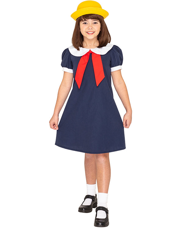 We love our bread and our butter but most of all, we love this French School Girl Deluxe Toddler Costume. This quality costume is inspired by everyone's favourite French girl from the beloved Ludwig Bemelmans book Madeline (and later the iconic 90s cartoon series). This cute costume has been designed exclusively and is made from a comfortable poly-cotton blended material. The costume includes a navy blue A-line dress featuring button closure at the back and short puffed sleeves with white cuffs, a white Peter Pan collar, and a red knot fabric sash attached to the collar at the front. To complete this cute costume, a yellow hat with black ribbon is included. Our exclusive CostumeBox design will be a winner at your child's next Book Week parade or fancy dress party.