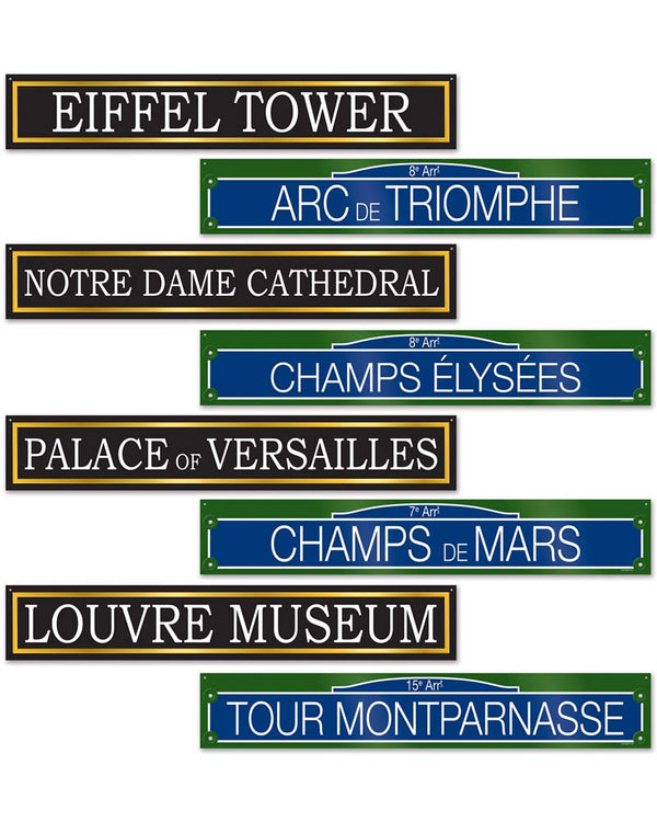 Decorate your French or Paris theme party with these card French Street Sign Cutouts. This pack comes with 8 cutouts printed on both sides, each with a different design. Combine with our wide range of French party supplies for a great celebration!