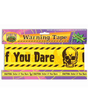 Warn everyone of the horror ahead of them with this Fright Tape. This yellow caution tape features a skull with "CAUTION: Enter If You Dare" printed in black. Perfect for the entrance of your haunted house scene.