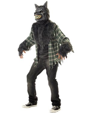 Leave your mark on your next Halloween or fancy dress party with this amazing Full Moon Werewolf Mens Costume. The shirt has a faux-fur chest attached, and the animotion mask mouth opens with the actions of your own mouth. Really Awesome!