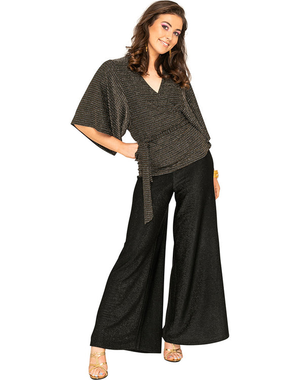 Funky Black Sparkle 70s Plus Size Womens Palazzo Pants