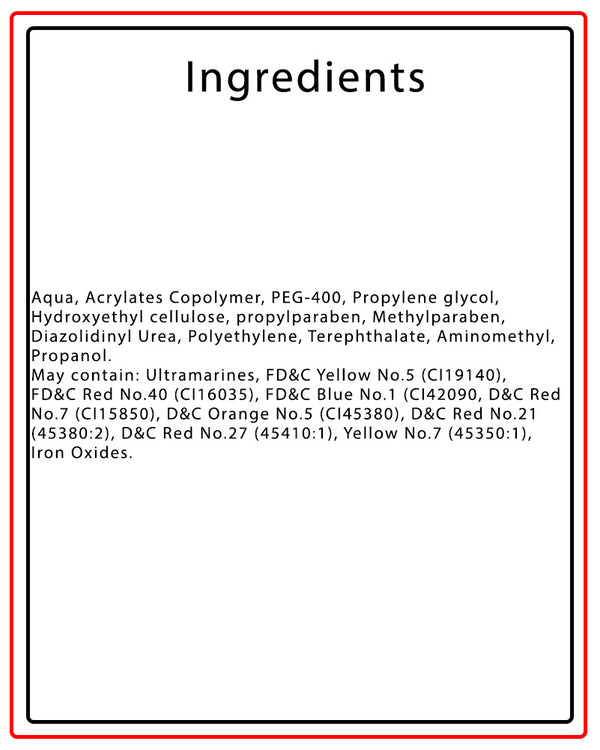 - Water based cosmetic grade glitter gel.