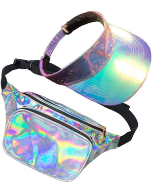 Check the flux capacitor and fire up the DeLorean in this Galaxy Grandma Bumbag and Hat Set. This visor and waist bag is truly one of a kind, with the rainbow-like reflection from the material you will look like you've just come back from the future. The straps on both items can be adjusted to fit perfectly to your specified size. This could be the perfect addition to a space-age elderly costume, or maybe you want to be the universe's greatest card shark. Whatever your costume this accessory set will help finish your visual intent.