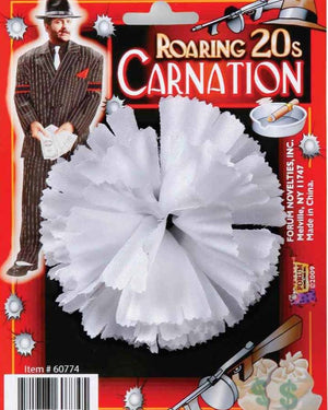 Bring a dapper air to your gangster suit or costume dress up with this Gangster White Carnation Pin. This pin features a white carnation flower made from a soft polyester fabric and easily pins to any jacket or shirt or can be placed in a chest pocket. Perfect for your next 1920s party, 80s prom costume or any fancy dress party where you need to look classy!