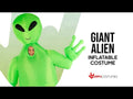 Your costume is sure to be out of this world when you wear this Giant Alien Inflatable Kids Costume. The costume includes a large bright green alien inflatable with three large fingers on each hand and big black eyes and mouth. There is a cutout in the costume for your face to poke through as well as a zipper closure at the back.
