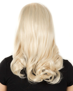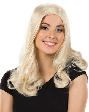 Become a blonde bombshell with our Glamour Deluxe Blonde Long Wavy Wig. Featuring a wavy light blonde wig with a part down the middle curls at the ends! Perfect if you just want see how you look as a blonde or to become modern or vintage hollywood starlet like Marilyn Monroe, Jennifer Lawrence or Taylor Swift. You know what they say: Blondes have more fun! A bonus wig cap is included for added comfort and to keep your own hair under wraps.