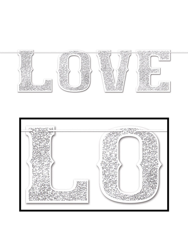 This Glittered Love Banner is perfect for decorating a number of different celebrations including Valentine's Day, weddings, anniversaries and engagement parties. This banner is printed on one side and is made of cardstock material.