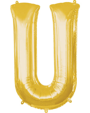 Add some colour to your birthday or party event with this Gold 40cm Letter U Balloon. Perfect for big milestone events!