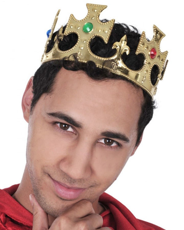 Rule the kingdom in this Gold and Jewelled Kings Crown, perfect for kids and adults as it's adjustable. Made from flexible gold plastic with faux gems set into it. Perfect for princes and queens too!