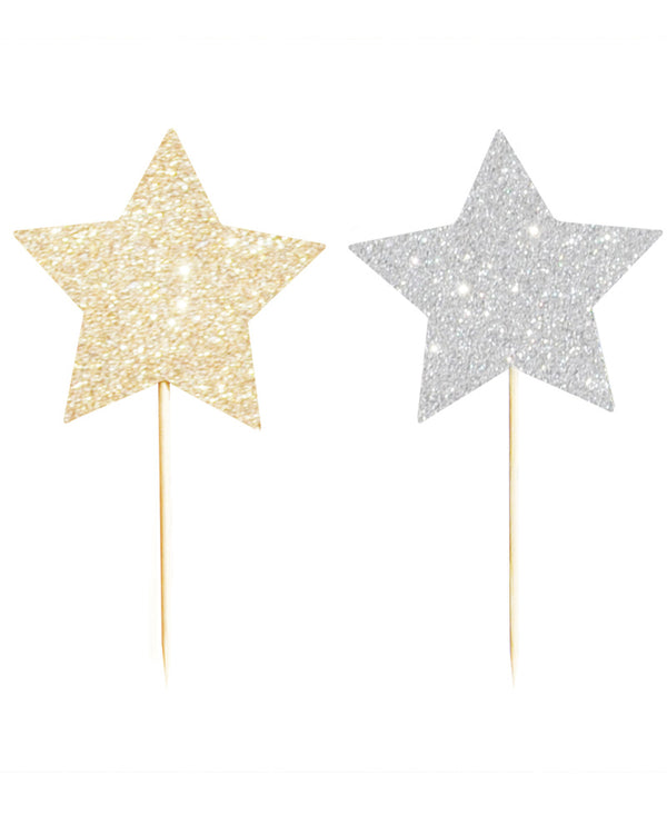 Gold and Silver Stars Reversible Cupcake Topper Pack of 12