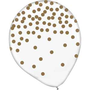Gold Confetti 30cm Printed Top Heavy Latex Balloons 6PK Pack of 6