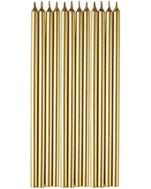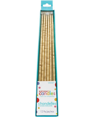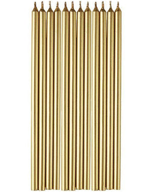 Why have regular candles when you can have these Gold Dinner Candles Pack of 12. The candles stand at 25cm high and would make to perfect statement on any cake! Combine these with some of our gold party supplies including party cups, party plates, tablecovers and more.