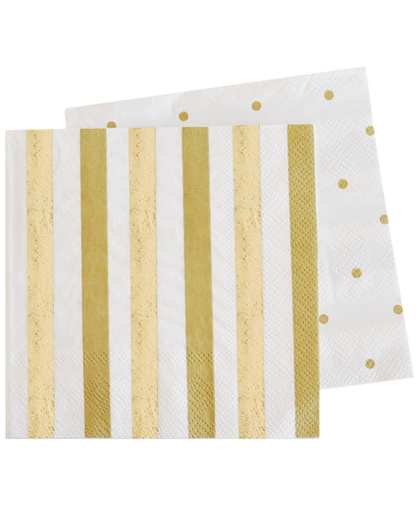 These gorgeous Gold Stripes and Dots Cocktail Napkins are perfect for a number of different celebrations including birthday parties, baby shower, engagement or weddings. Combine with our range of Gold party supplies for a beautiful coordinated look.