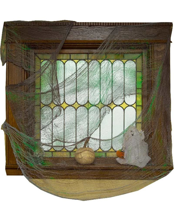- Grey and Green Gauze Drape Curtain 2.4m The Halloween decorating possibilities are endless with this Grey and Green Gauze Drape Curtain 2.4m. Included is 2.4m of sheer green and grey gauze drape, perfect for draping across furniture, fences, wall art and more.