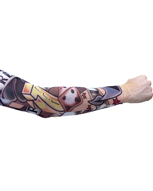 This Greaser Tattoo Sleeve will shape you up to be her man and is the perfect addition to your Grease or 50s themed costume! The sleeve is made from a flesh coloured mesh and is covered with colourful fake tattoos.
