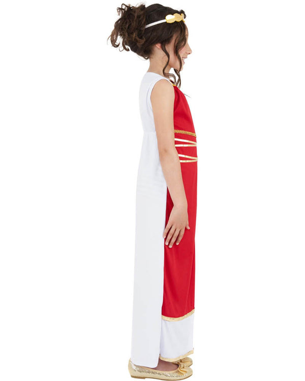 Transform into a Grecian goddess with this stunning Grecian Girls Costume. The red and white dress-style robe, adorned with gold accents across the waist, shoulders and trims, captures the essence of ancient Greece royalty. Perfect for Greek and Roman costume parties, school events, or historical reenactments, this costume will make any girl feel like a true goddess.