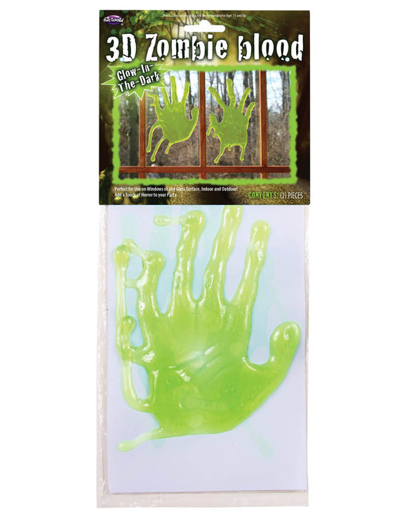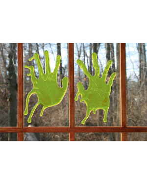 Have a bit of fun this Halloween with this set of gel like Green Zombie Bloody Hands Stick On Window Cling. Simply stick them to glass or mirrors and watch them glow at night! With a great 3D effect, the hands light up in the dark, giving off an eerie green glow. You can use them inside or outside too!