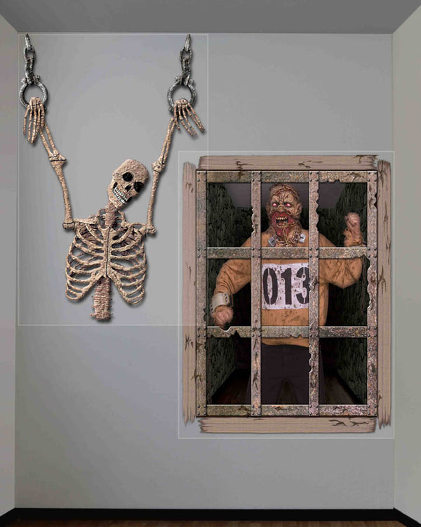 Create a creepy dungeon look at Halloween with these Gruesome Wall Decorations. Made from a thin plastic material these wall decorations can be easily attached to most surfaces with stick tape or blu tack. The skeleton and the deranged prisoner are sure to give your guests or trick or treaters a fright. Can be used inside or outside.