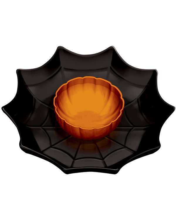 Serve up delicious snacks with this Halloween Classic Orange and Black Chip and Dip Pumpkin. The serving bowl comes with a black spider web-shaped chip platter and a pumpkin-shaped dip bowl attached in the center. Great for placing on your own buffet table at your Halloween party to serve up and array of chips and dip. Combine with our range of Family Friendly party supplies including party cups, party plates, tablecovers and more.