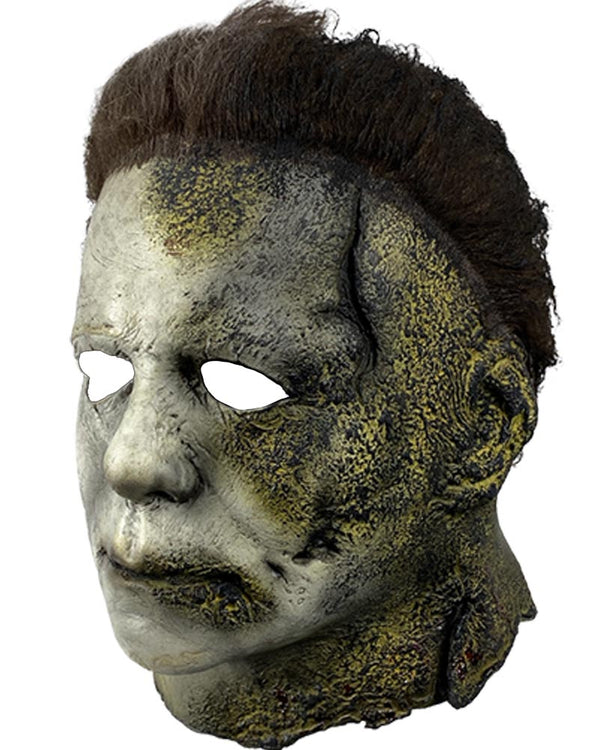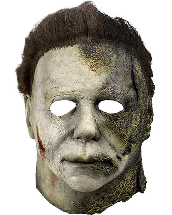 Teleport or run to your victims off camera wearing our Halloween Kills Michael Myers Premium Mask. Inspired by the mask Michael Myers wears in the Halloween Kills film. The Halloween mask features a highly detailed Michael Myers mask with rotting decayed highlights on one side and pale white skin on the other. The mask also comes attached with brown hair.