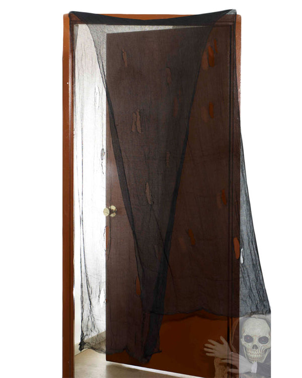 Halloween Spooky Cloth Decor to adorn your house, drape over furniture, walls or doors to set the scene. Thin black gauze cloth with tattered holes measuring 33in/ 84cm x 144in / 3.6m.