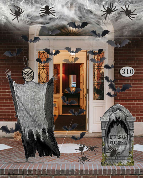 - Black Large Reaper Hanging Prop Decoration 1.2m: Your guests are guaranteed to get a fright when they see this Black Large Reaper Hanging Prop Decoration 1.2m. The prop features a skeleton head with outstretched arms wearing a hooded black and grey gauze cloth.