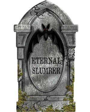 - Eternal Slumber Foam Tombstone: Trick or treaters will no to come to your door with our Eternal Slumber Foam Tombstone 55cm. Featuring an ominous-looking grey styrofoam tombstone with the words eternal slumber. The tombstone has green mossy stylings and a creepy black bat with piercing red eyes. Pair with our range of graveyard props and decor including tombstones and lawn breakers to finish your graveyard this Halloween.