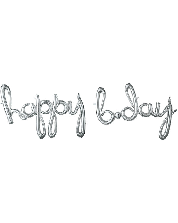 Every birthday bash needs one of our Happy Bday Silver Phrase Foil Balloon. The party supply features 2 silver foil balloons making up the words "happy" "b-day", styled in fancy cursive writing! For easy inflation the balloons come with a straw for you to breathe air into the balloons, as well as ribbon to tie the balloons up across a wall. Otherwise, check out our helium tanks to ensure the foil balloons float for the whole party, just add balloon weights and you're golden!