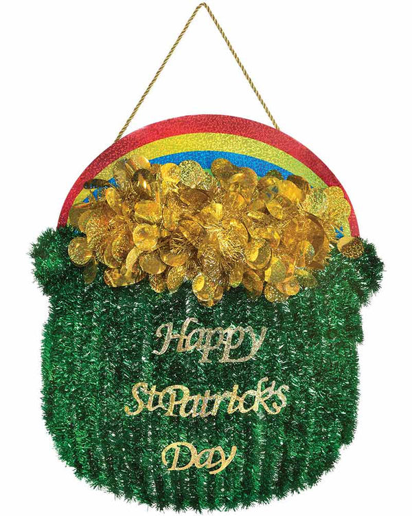 Happy St Patricks Day Tinsel Hanging Pot of Gold Decoration