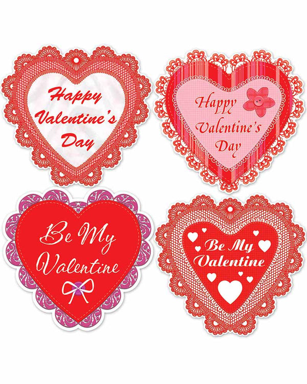 Happy Valentines Day Lace Heart Cutouts Pack of 4