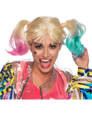 You too can own Harley Quinn's famous head of hair with this Harley Quinn Birds of Prey Adult Wig. The wig is blonde and features two short pigtails with a fringe at the front. One of the pigtails is dyed pink at the end and the other is dyed blue at the end in true Harley Quinn style. Combine with our Harley Quinn Birds of Prey costume and you're ready to start trouble alongside friends Catwoman and Poison Ivy. Wear a wig cap for added comfort and to keep your own hair under wraps.