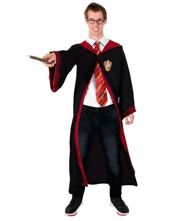 Transform yourself into a Gryffindor student with this officially licensed Harry Potter Gryffindor Adult Robe. This costume includes the ankle length polyester robe that is perfect for playing Harry, Ron or Hermione. The robe has an attached hood with lining in house colours that extends down the front of the robe, as well as a heat transferred Gryffindor emblem on the left hand side of the chest.