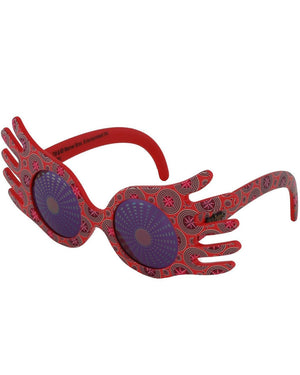 Spot those mind-numbing nargles with these Harry Potter Luna Lovegood Spectra Specs. Luna is fun and quirky and she sports the best magical glasses in all of Hogwarts. She can heal Harry's broken nose. What can you do wearing these magical glasses? Authentic looking shiny dark pink plastic frames with sparkling silver on the frame and lens.