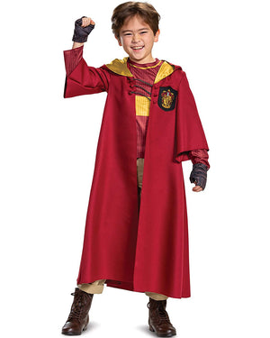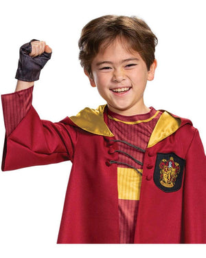 Beat Slytherin in the Quidditch cup wearing our Harry Potter Quidditch Uniform Deluxe Boys Costume. The costume features an officially licensed harry potter costume, inspired by the uniform that the Gryffindor quidditch team wears. Featuring a red hooded robe with rope fasteners at the chest and an embroided Gryffindor patch on the chest. The costume comes complete with a knit yellow and red jumper and a pair of fingerless gloves. Great for your Harry Potter costume next Halloween.